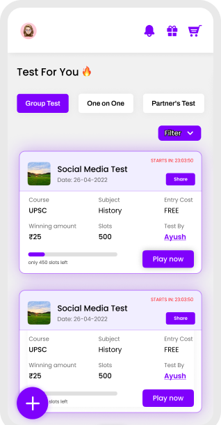 Choose a test and click on play now to take participation in challenges